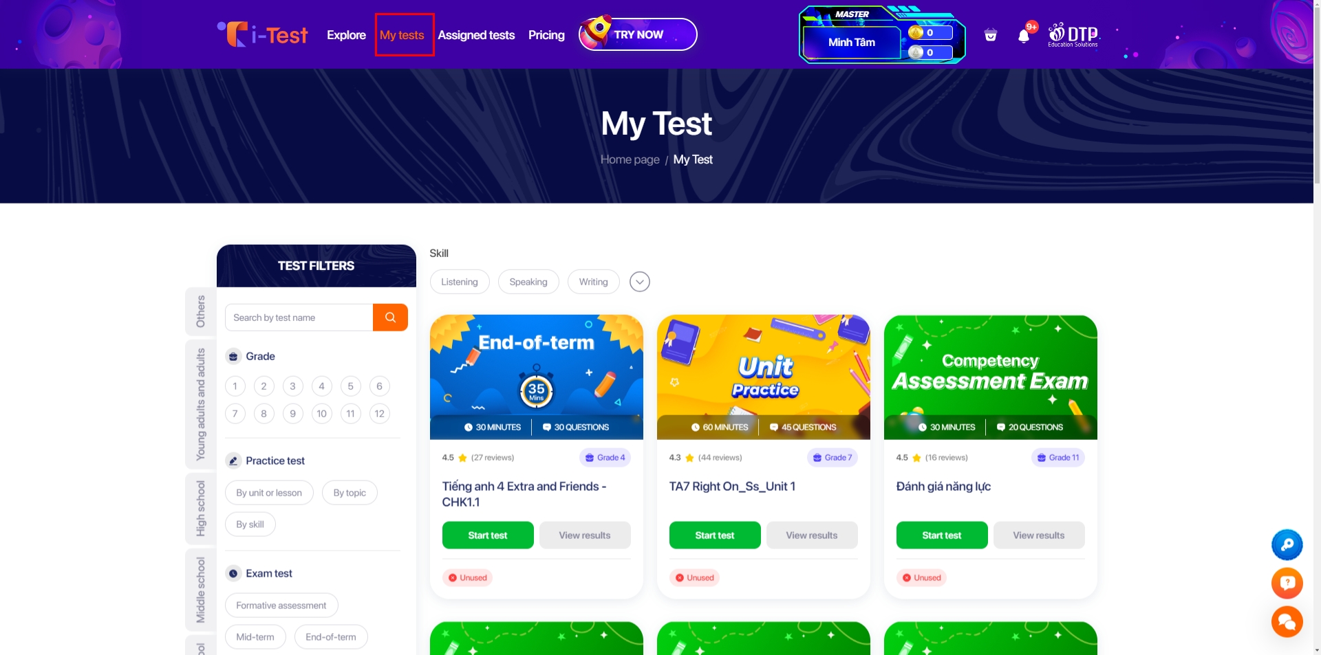 Go to “My tests” menu